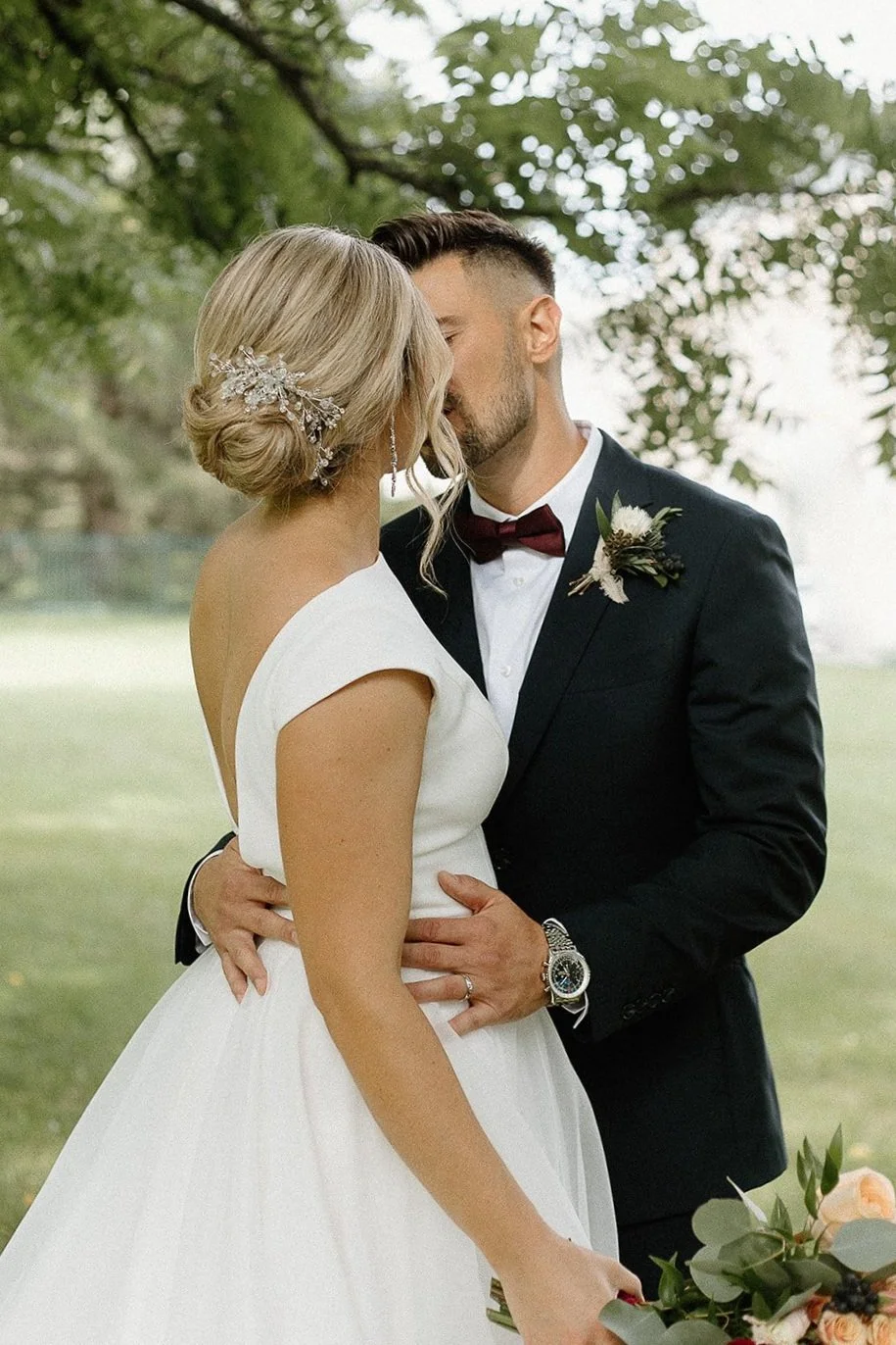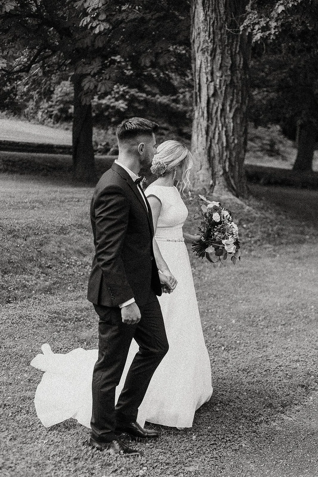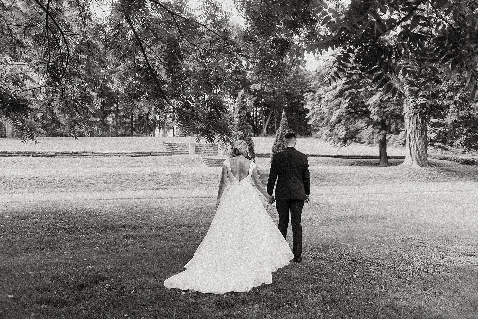 We went back to the Abbey for cocktails in the courtyard, then headed out onto the picturesque grounds for portraits. It had very English garden vibes, with old trees, classical styled gates and stone steps on the sprawling grounds.