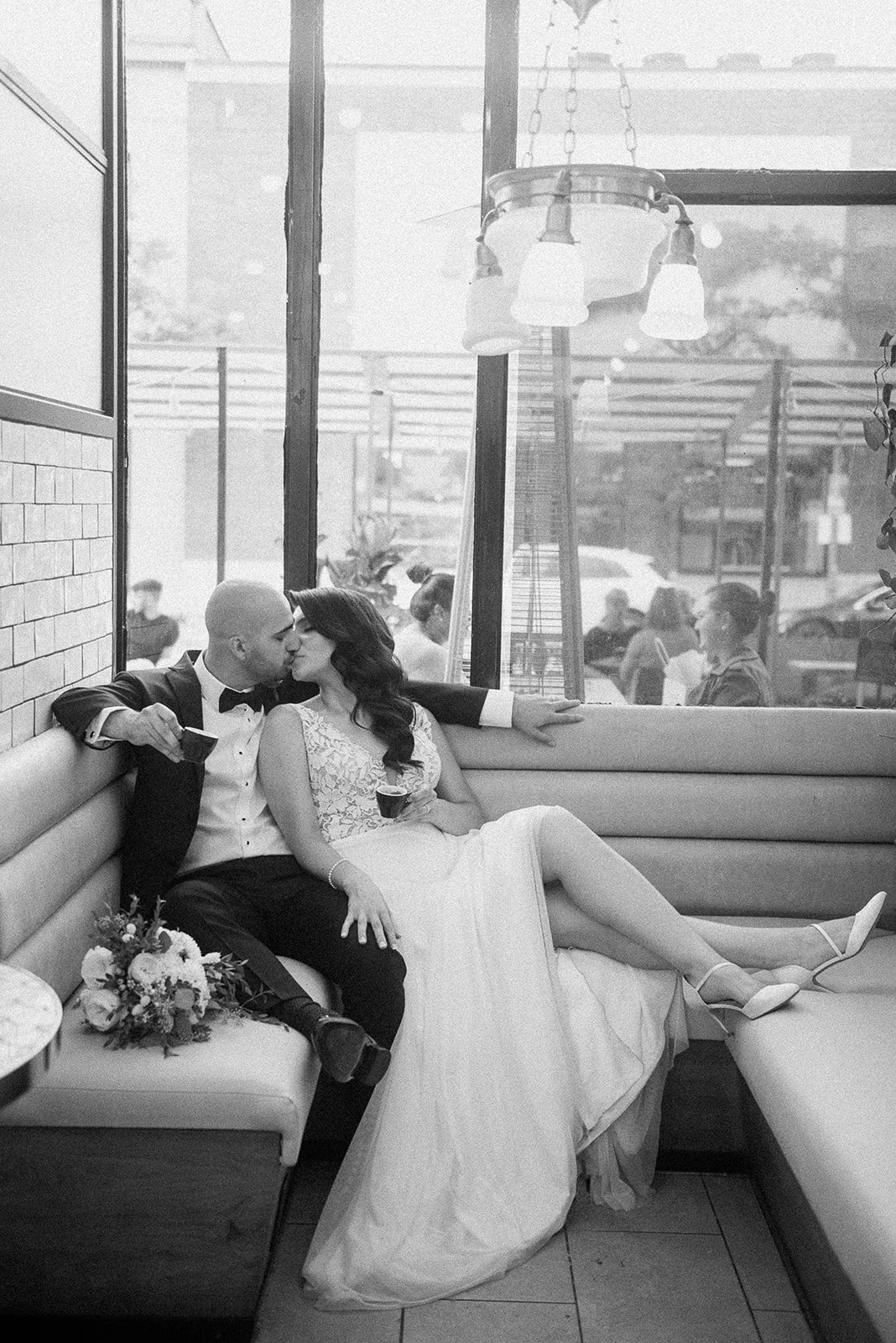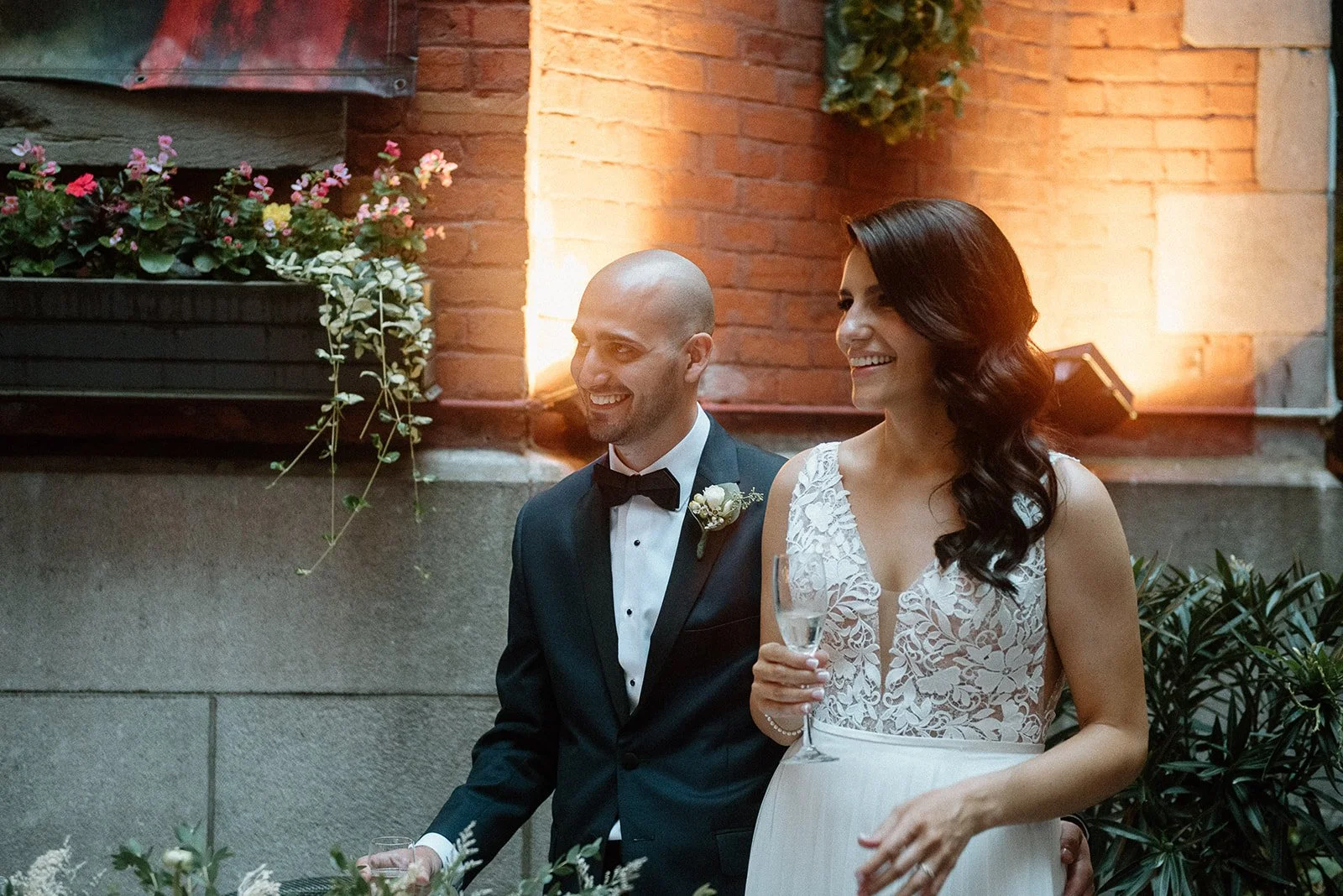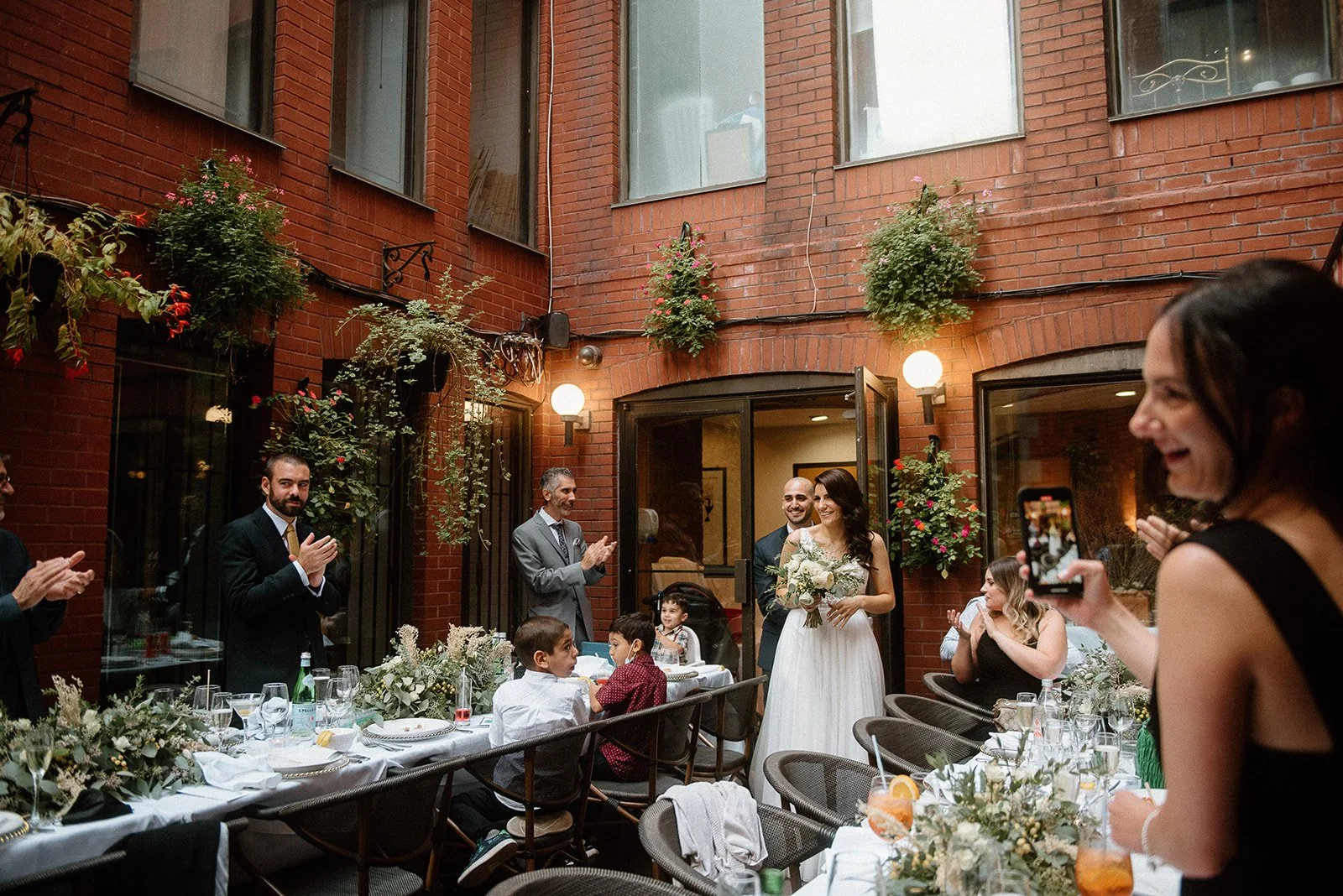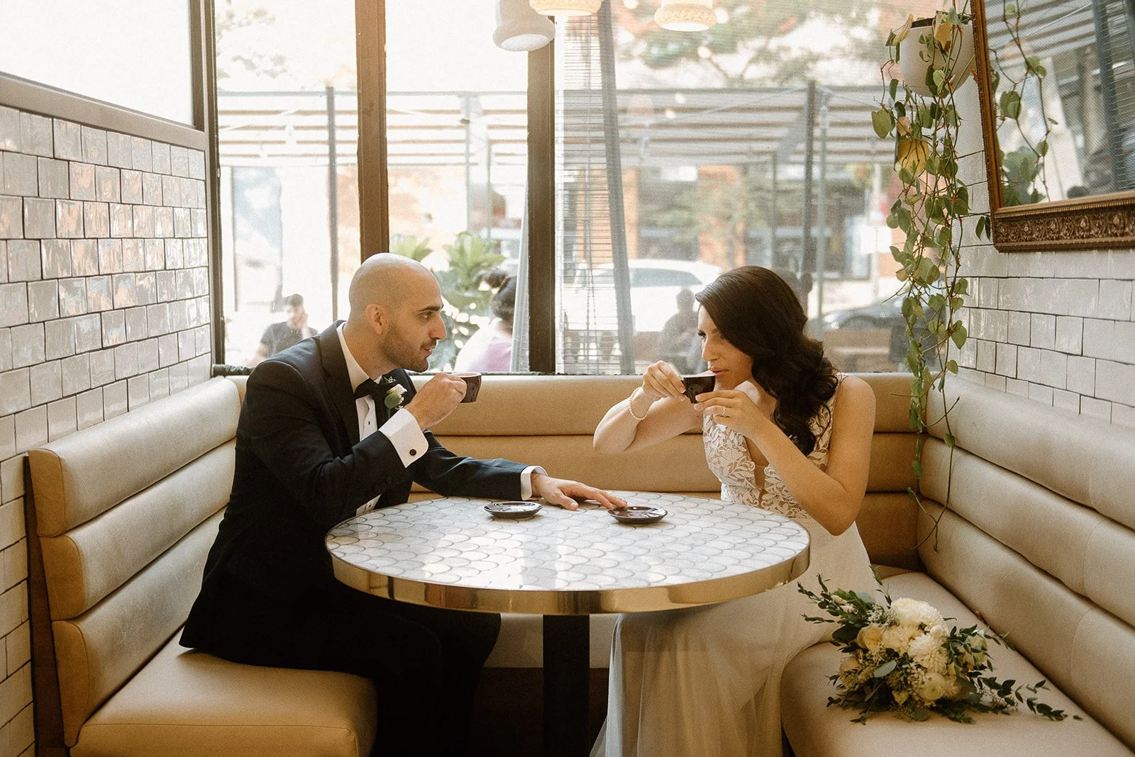 Trendy, Intimate Wedding with Portraits Photographed at Bazin Cafe in Westmount and Cafe Il Cortile in Downtown Montreal