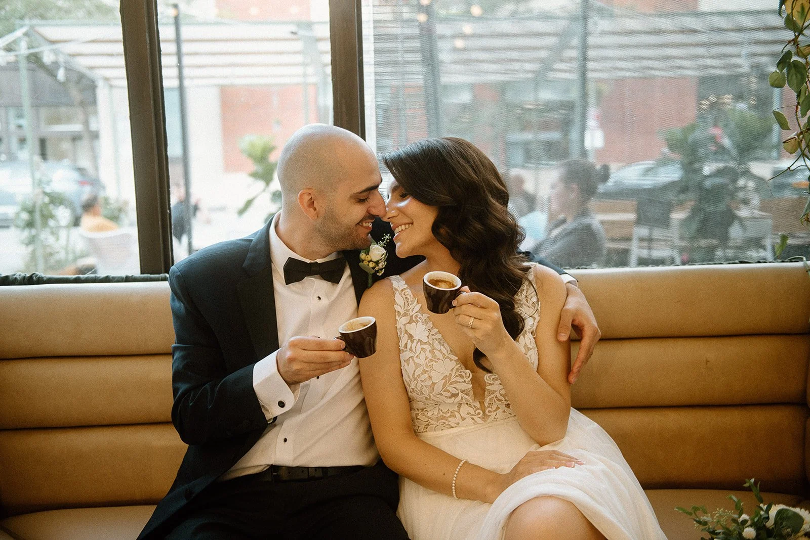 Take me to Italy without the jet lag - that’s what Melissa and Roger did for their wedding celebration! They tied the knot a year earlier but due to Pandemic restrictions, they couldn’t have a proper celebration. Well, they fixed that! Before heading to the venue, they made a pit stop (you know your girl loves pit stops!) at the fashionable and trendy Bazin Café in Westmount for some very cute portraits, and an espresso pick me up.